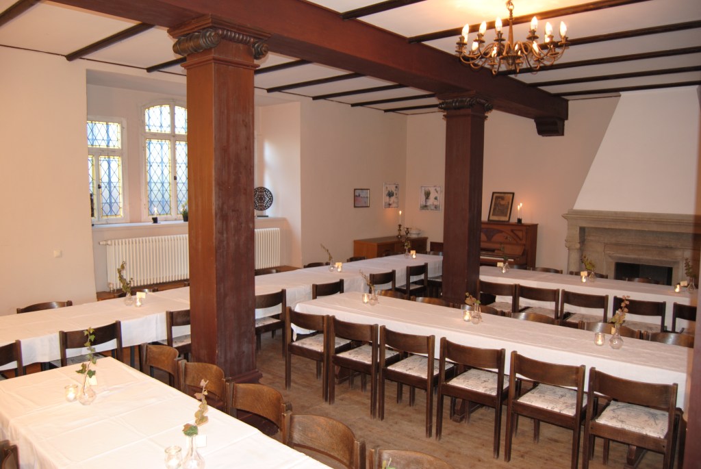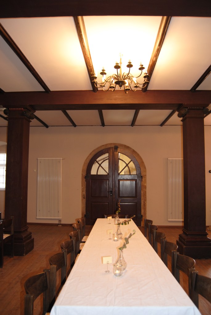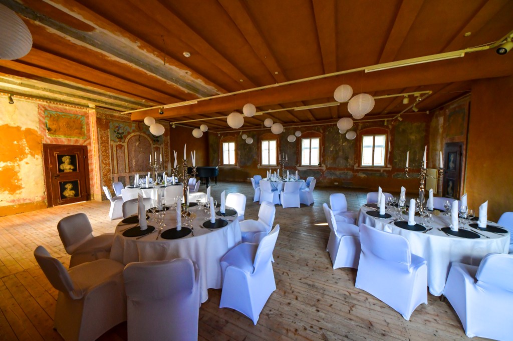 Die Festebene ist ein großzügiger Raum für bis zu 60 Personen mit Bankettbestuhlung. Sie bietet mehrere zusätzliche kleine Räume, die flexibel als Buffetbereich, Garderobe oder Tanzfläche genutzt werden können – ideal für Veranstaltungen mit besonderem Flair oder Seminare.